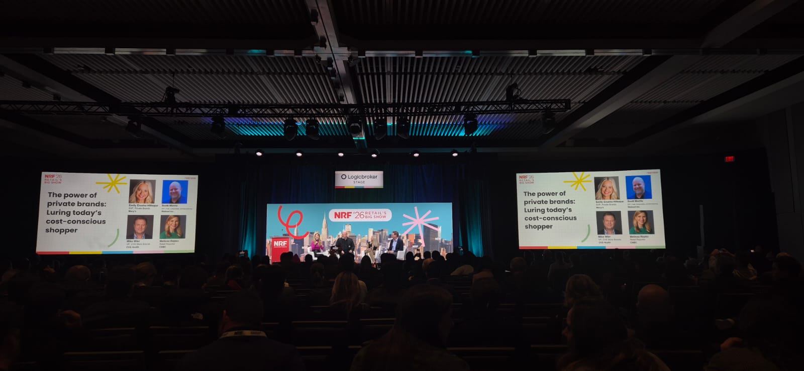 A conversa foi mediada por Melissa Repko, repórter de varejo da CNBC, e reuniu Emily Erusha-Hilleque, SVP de Private Brands da Macy’s; Scott Morris, SVP de Food, Consumables and Manufacturing da Walmart; e Mike Wier, VP de Store Brands da CVS Health.